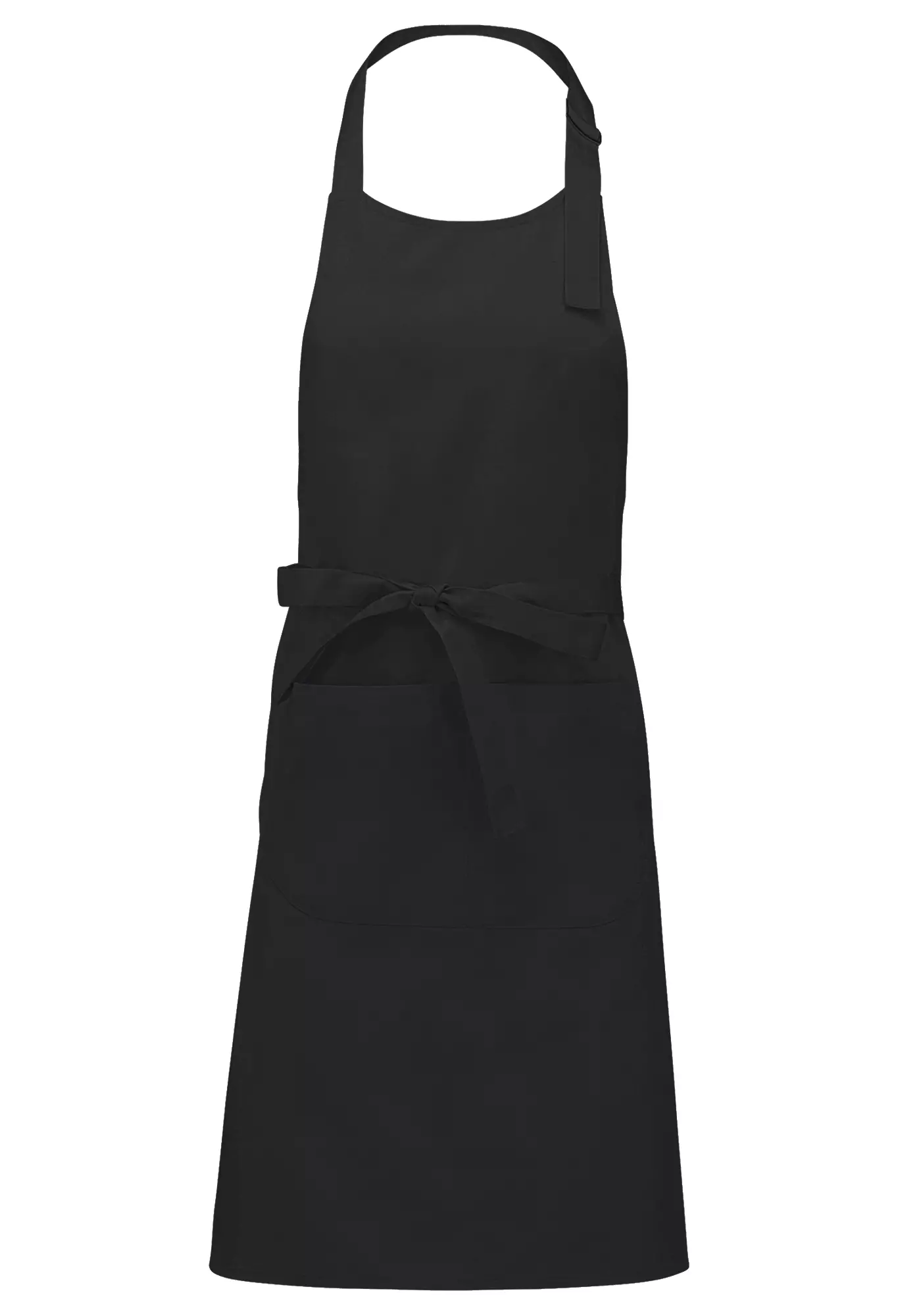 Pitkä vyötäröesiliina 2-os.etutasku Musta KARIBAN pesu 60°C 100% puuvilla